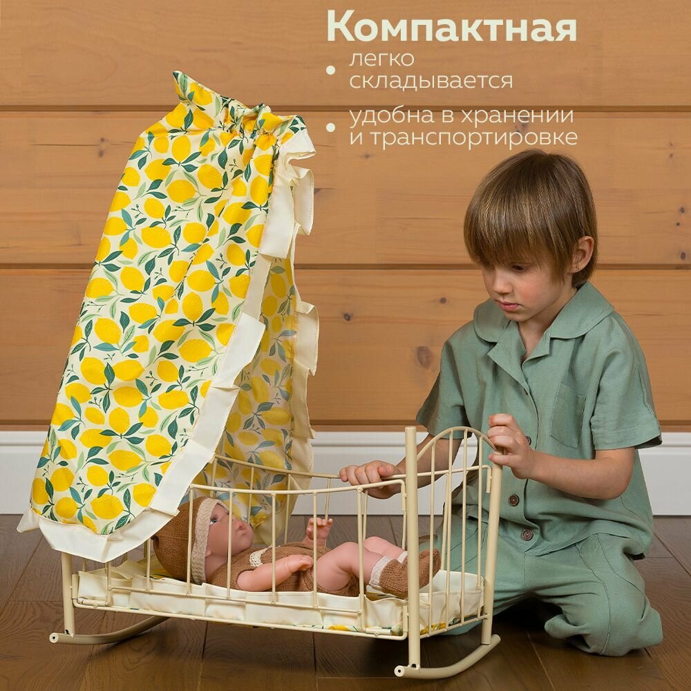 Кроватка для куклы с балдахином, постельным бельем, складная информация: