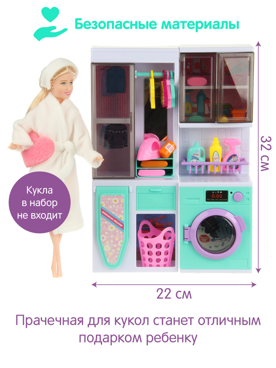 Игровой набор Veld Co "Прачечная для кукол", полимер, 18 предметов, 3-7 лет информация: