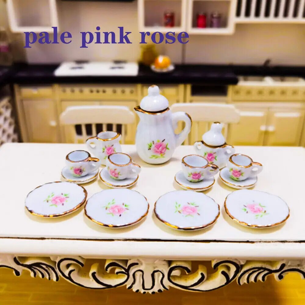 Миниатюрный фарфоровый чайный набор для кукольного домика 15 шт, Розовый информация: