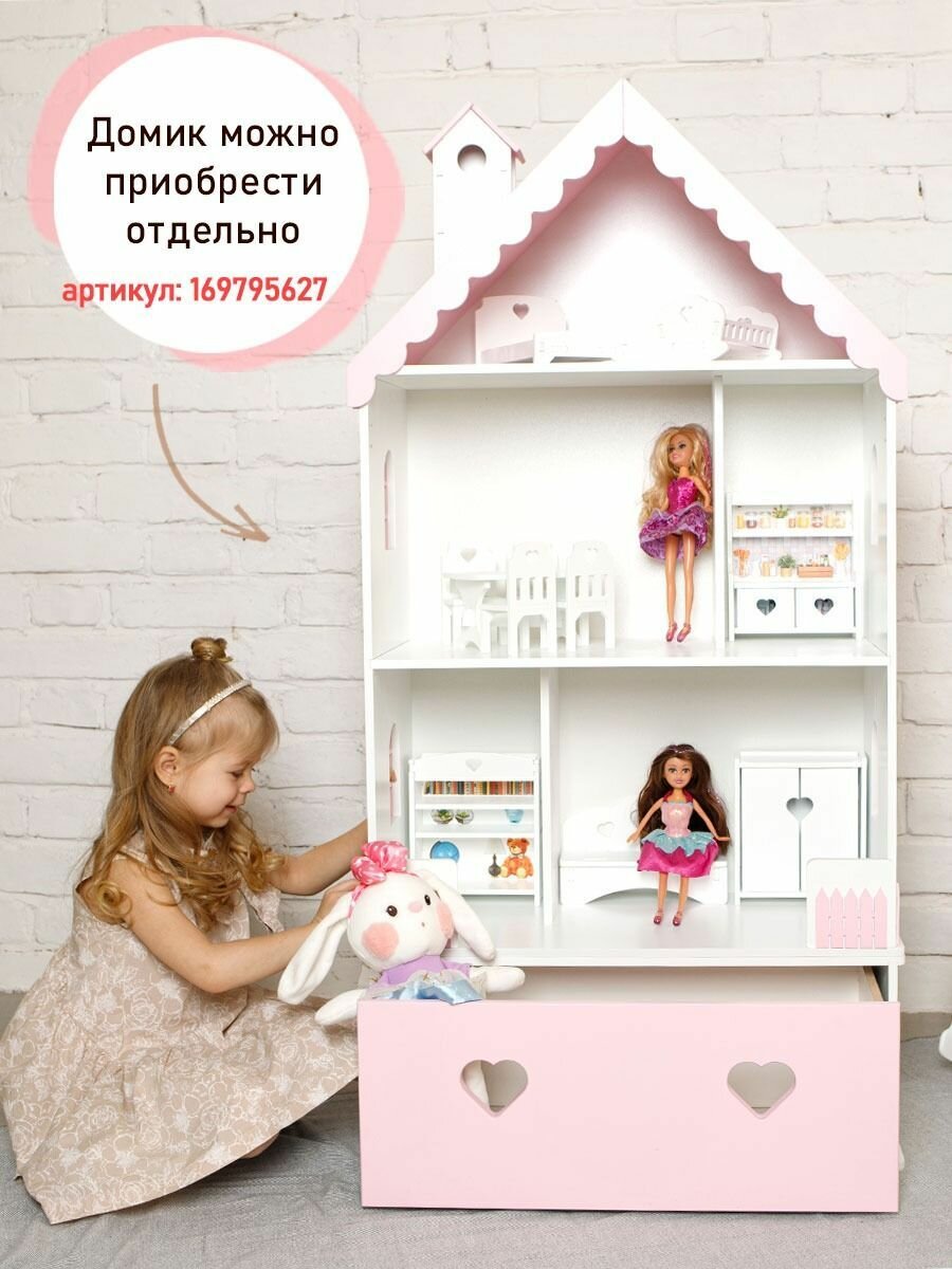 10 цен на Комод для кукольного домика Вероника , Ящик для игрушек , Мебель в детскую , Бело-розовый