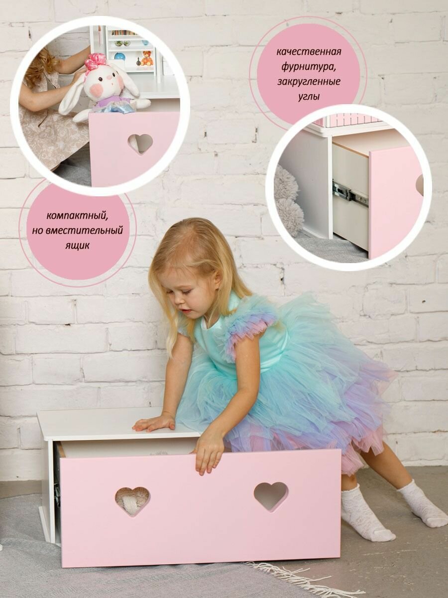 Комод для кукольного домика Вероника , Ящик для игрушек , Мебель в детскую , Бело-розовый информация: