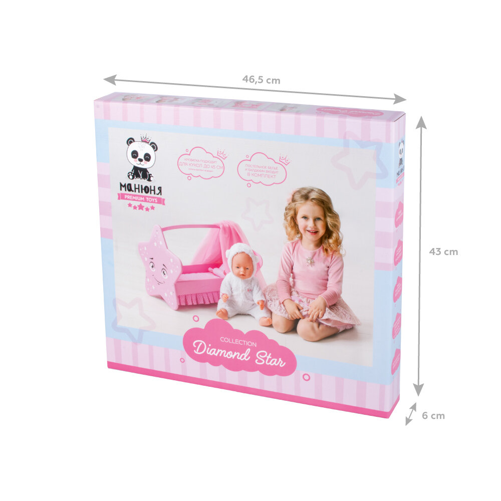 Мебель для кукол деревянная 47 см МАНЮНЯ игрушечная кроватка для куклы звездочка MEGA TOYS / аксессуары для кукол reborn, реборн информация: