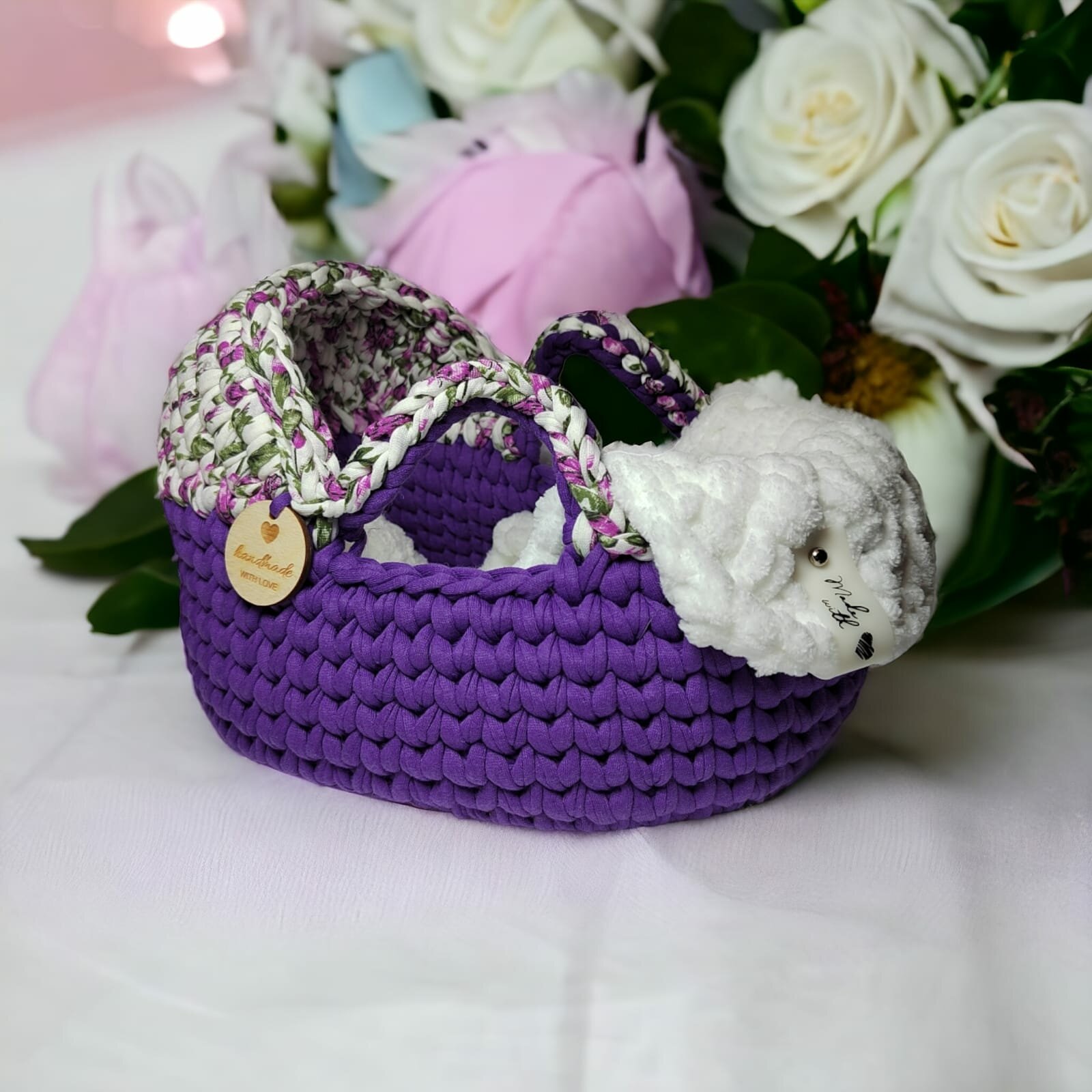 10 цен на Вязаная люлька для кукол/кроватка для кукол с постелькой 20х15см