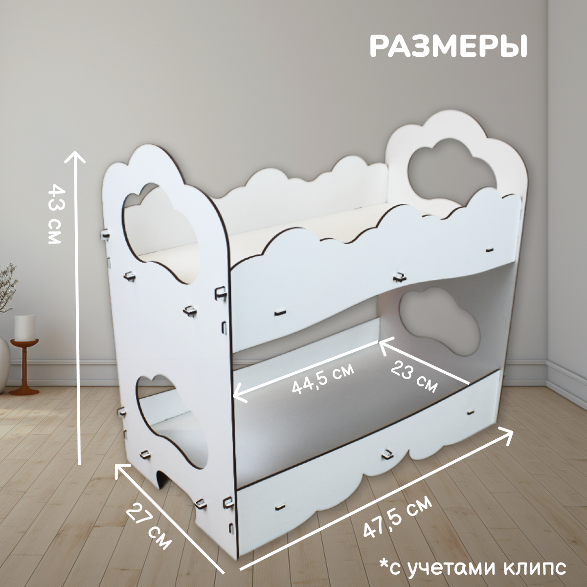Кукольная мебель - двухъярусная кроватка, игрушка для детей, белый цвет 760 ₽