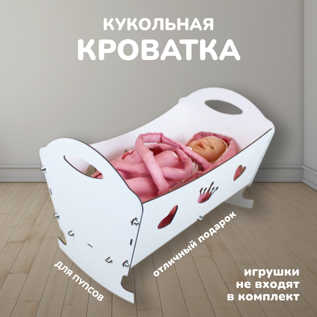 10 цен на Мебель для кукол - кроватка люлька-качалка, игрушка для детей, белый цвет