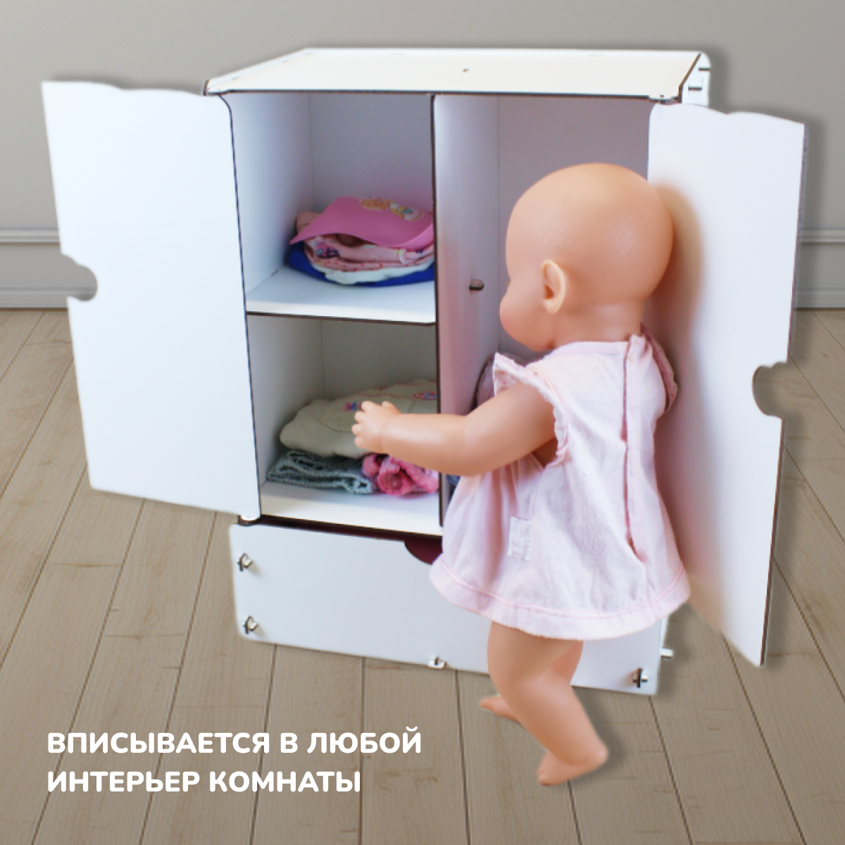 10 цен на Мебель для кукол. Шкаф для пупсов до 45 см , белый, деревянный