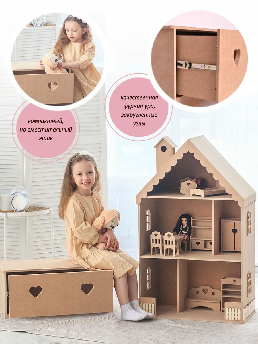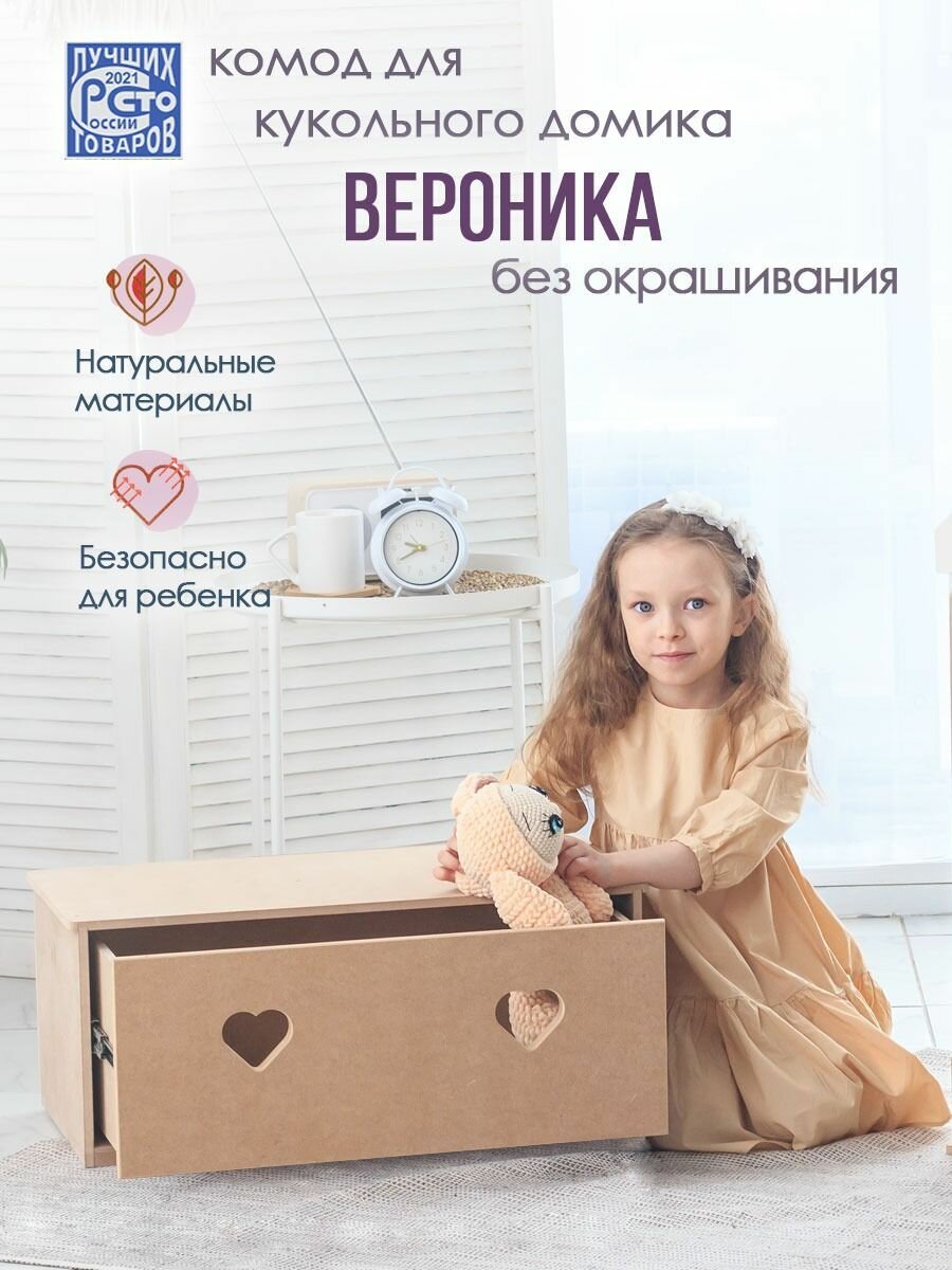 Комод для кукольного домика Вероника, Ящик для игрушек, Мебель в детскую, Без окрашивания информация: