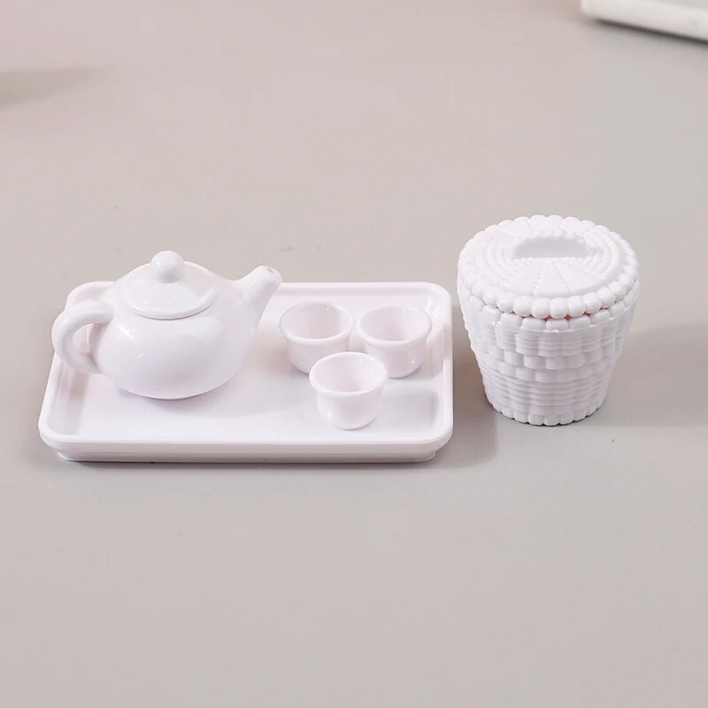 MYPANDA Миниатюрный бамбуковый чайный столик для кукольного дома 1:6, Белый информация:
