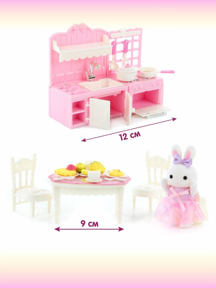 Игровой набор мебели с зайкой "Котокафе", Veld Co / Игрушечная мебель для кукол с одеждой и питомцем