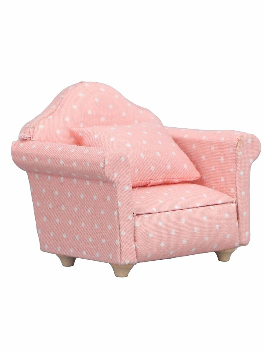 Отзывы на Миниатюра кукольного домика в масштабе 1:12, розовая и белая миниатюра дивана и стула в горошек