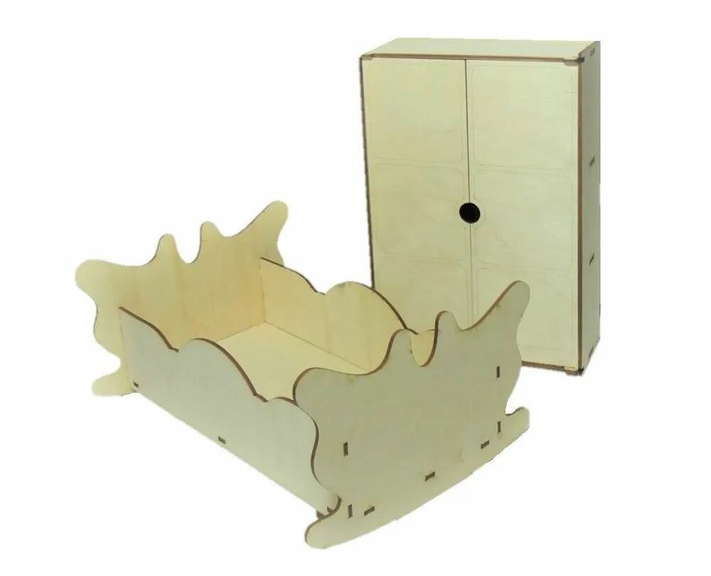 10 цен на Деревянная детская мебель для кукольного домика "Кроватка со шкафом " для кукол 15-20 см