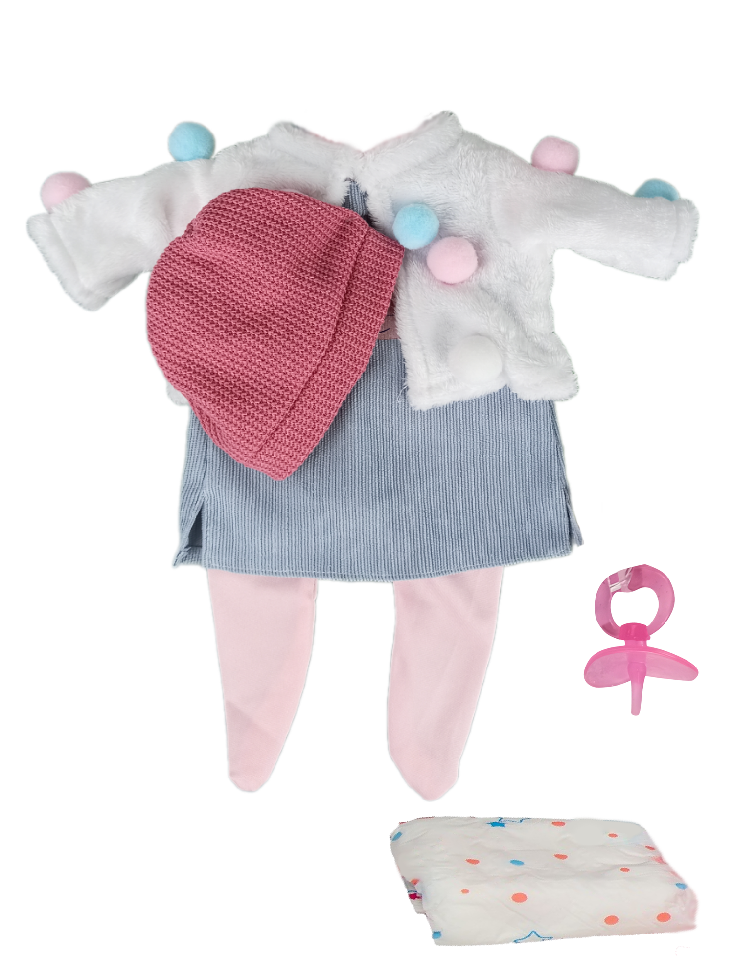 Отзывы на Одежда для кукол пупсов ростом 35 - 42 см, сарафан, ползунки, накидка, шапка, подгузник, пустышка, набор из 6 предметов
