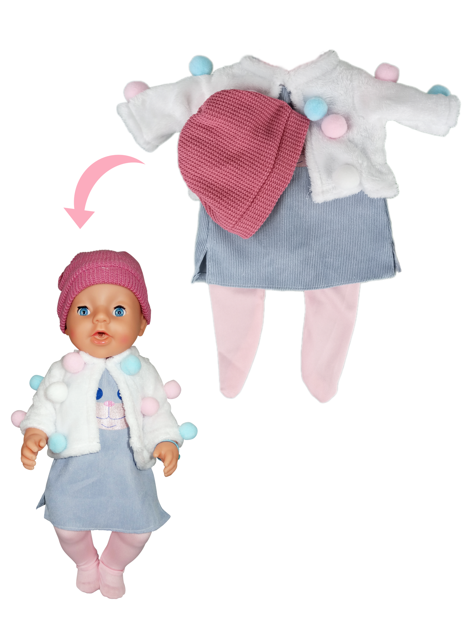 Одежда для кукол пупса ростом 35 - 42 см, набор: комбинезон, шапочка