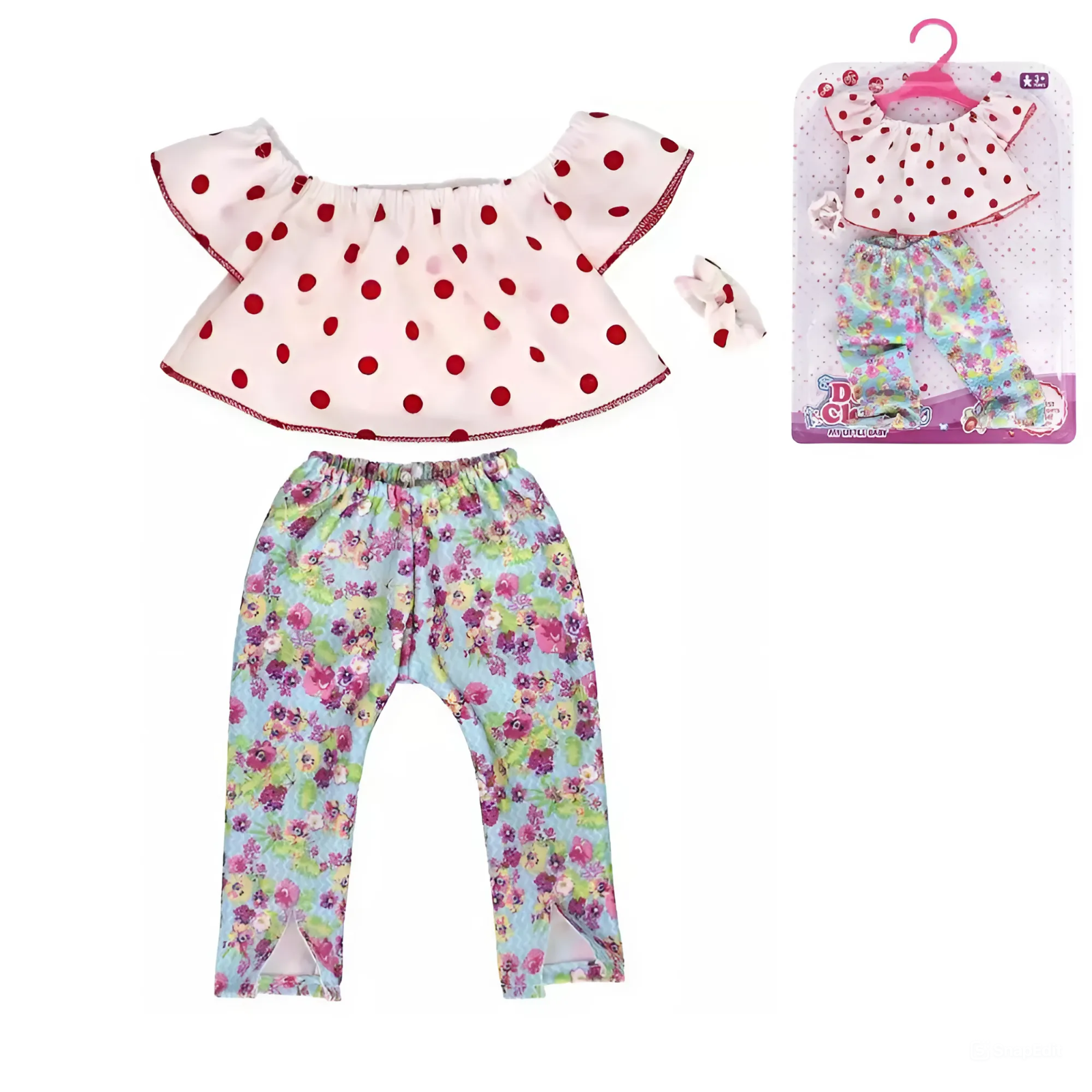 Одежда для кукол набор для пупса 35 - 42 см (брюки, кофточка, резинка, вешалка)