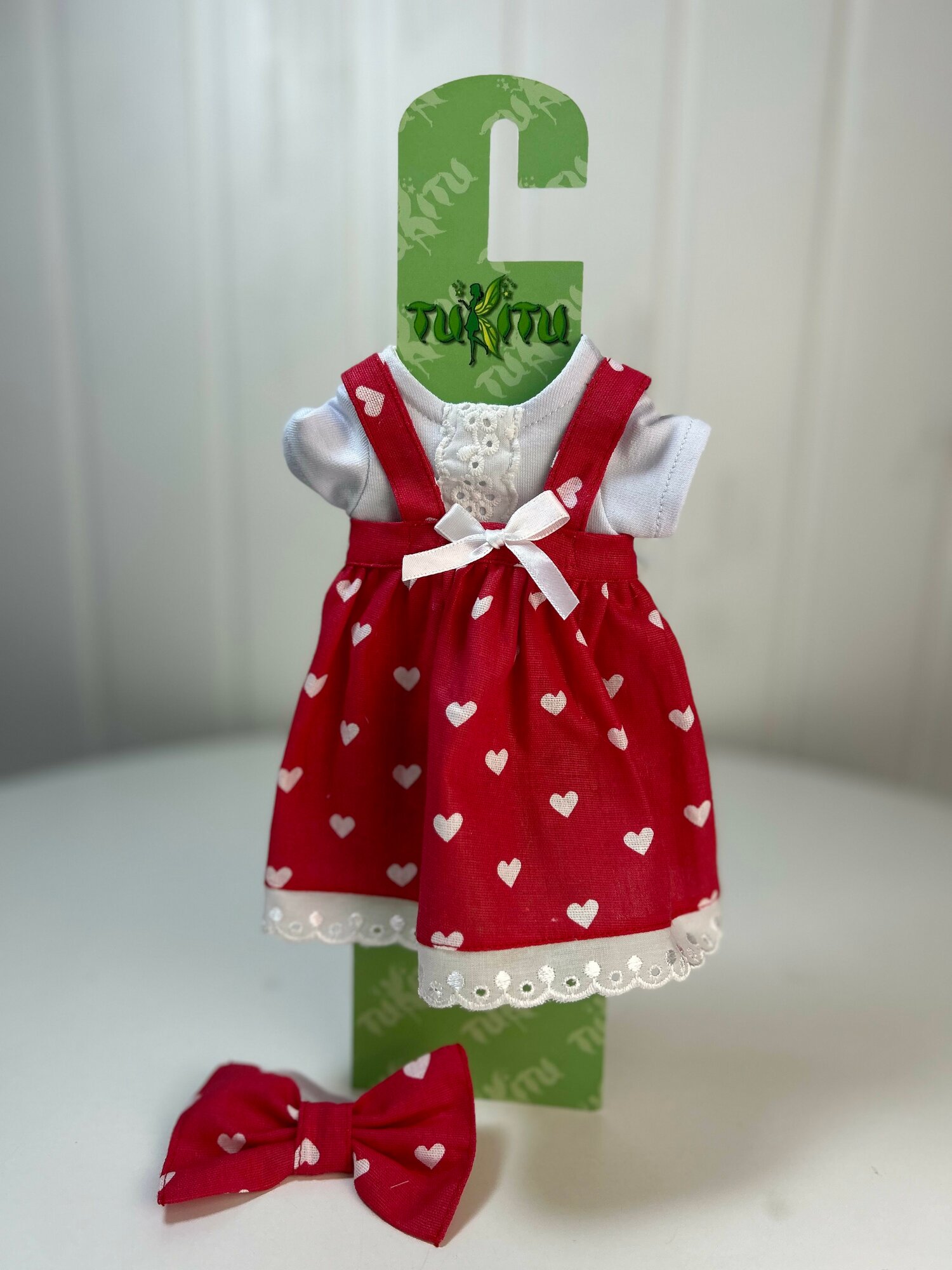 Комплект одежды для кукол: Сарафан "Сердечки", бант на голову, арт. 4 информация: