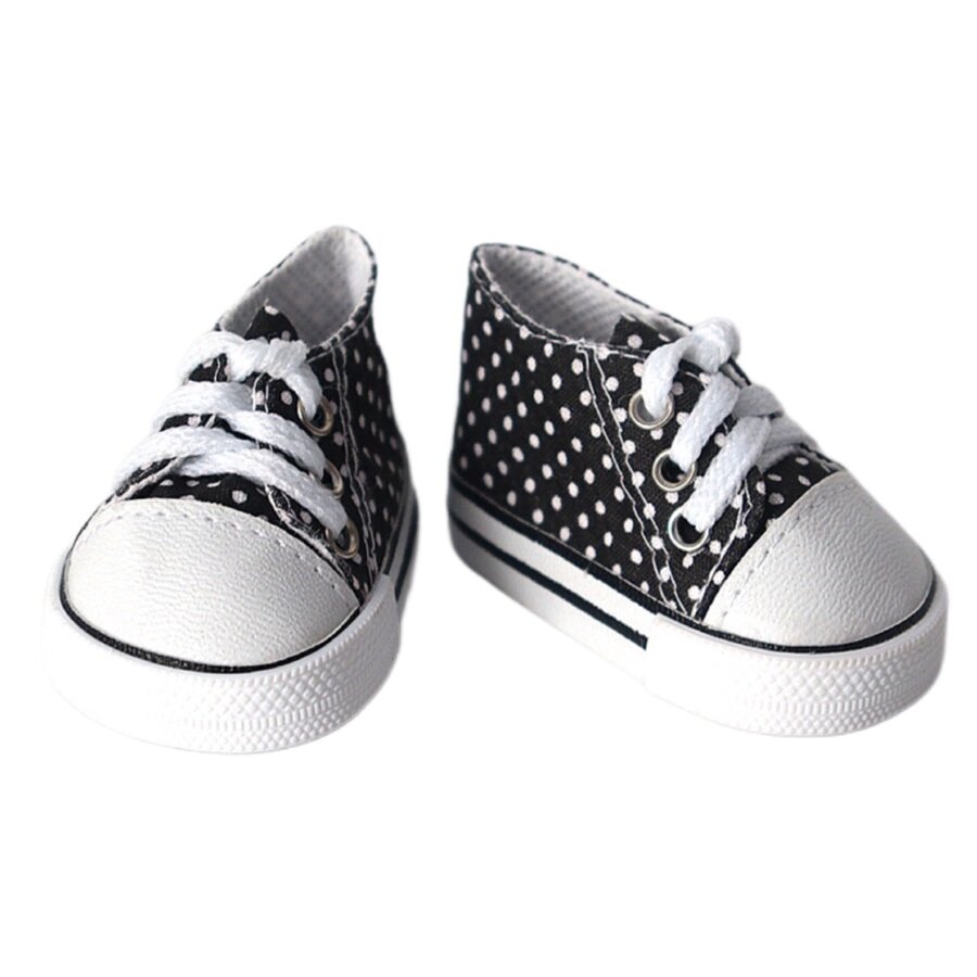 Отзывы на Обувь для кукол, Кеды на шнурках 7 см для кукол 42-50 см, черные в белый горошек