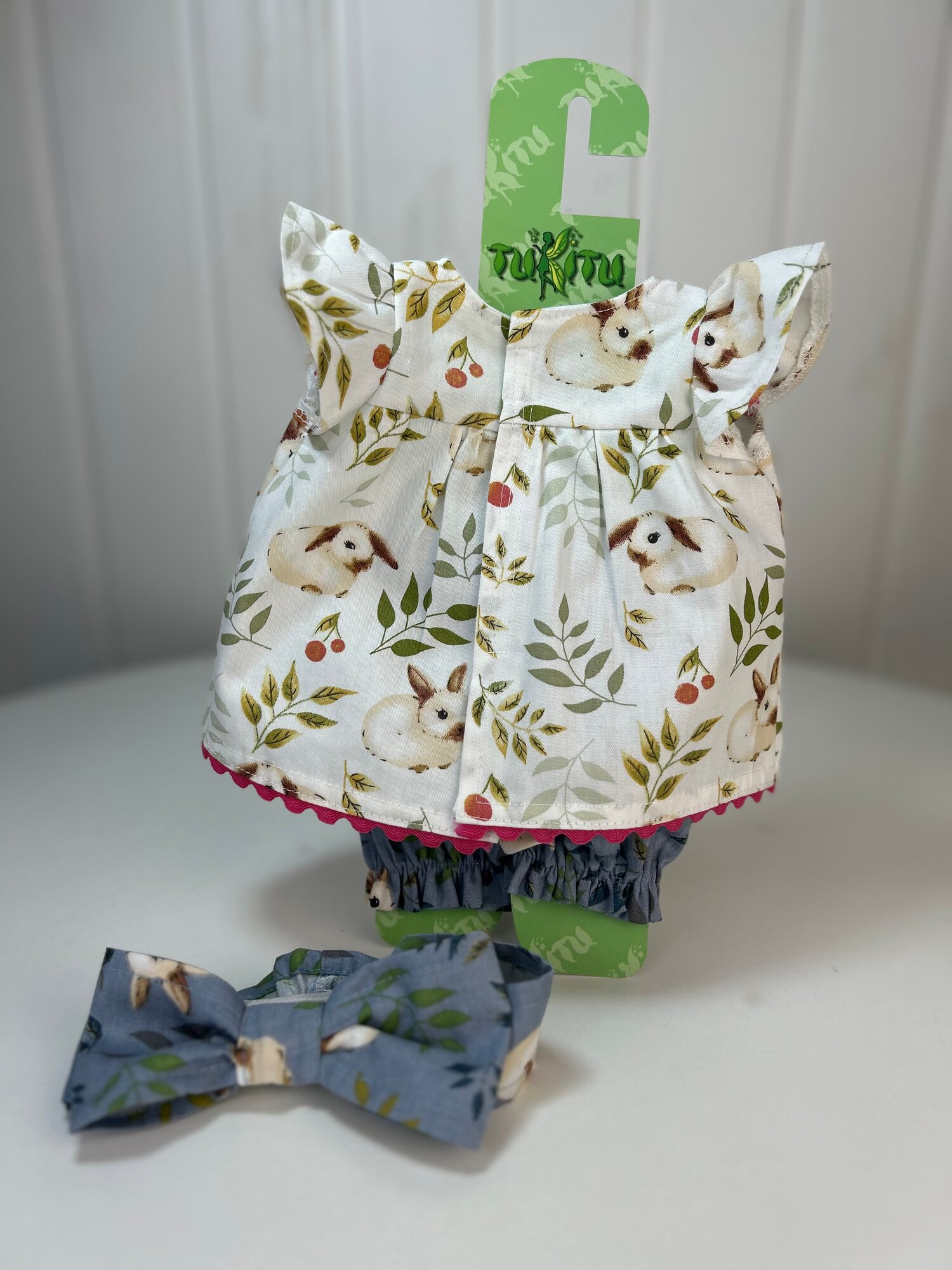 Комплект одежды для пупсов 47 см "Зайки в цветах": платье, штанишки, повязка-бант, арт. 83 информация: