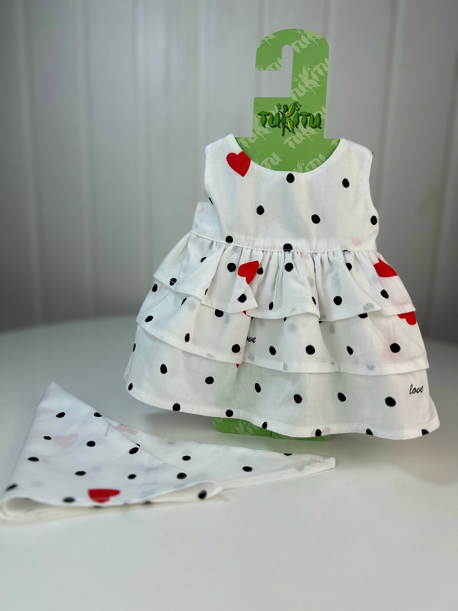 Отзывы на Комплект одежды "Сердечки" для пупсов 43-47 см: платье, штанишки, косынка, арт. 133