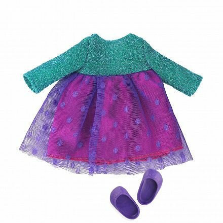 Одежда для куклы Весна Ася, 27см, комплект платья и балетки, зеленый/фиолетовый информация: