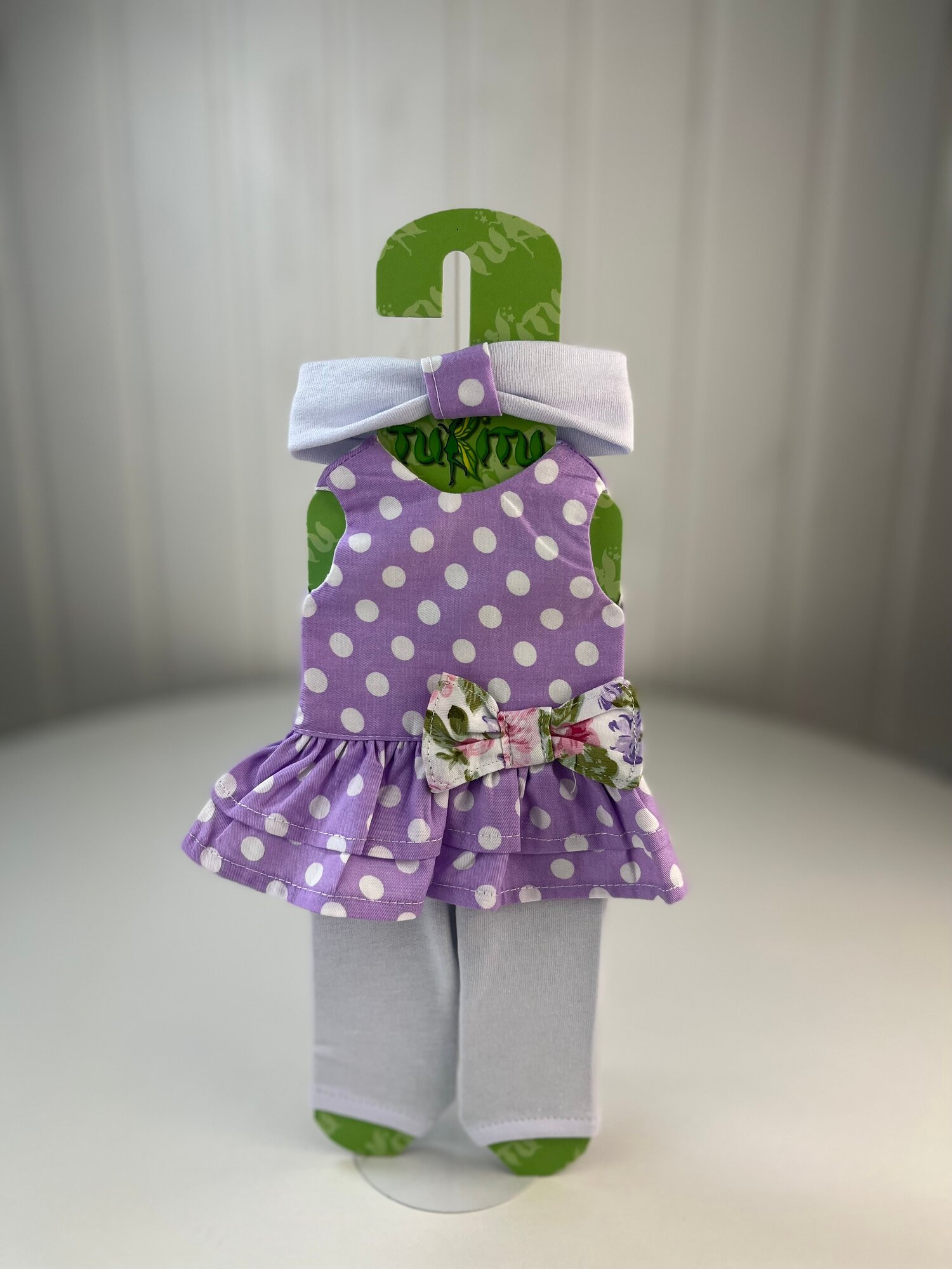 Комплект одежды для кукол и пупсов: Платье "Лиловые цветочки", бант на голову (для кукол с обхватом талии 13-16 см), арт. 10