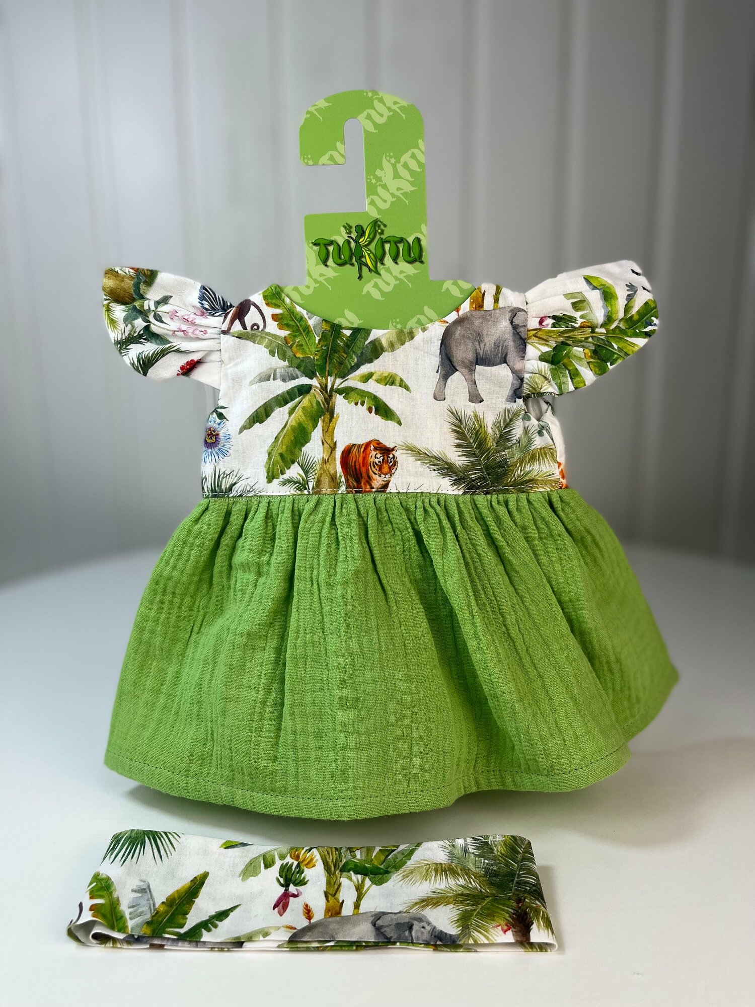 Комплект одежды для пупсов 47 см "Саванна": платье, штанишки, бант, арт. 46 информация: