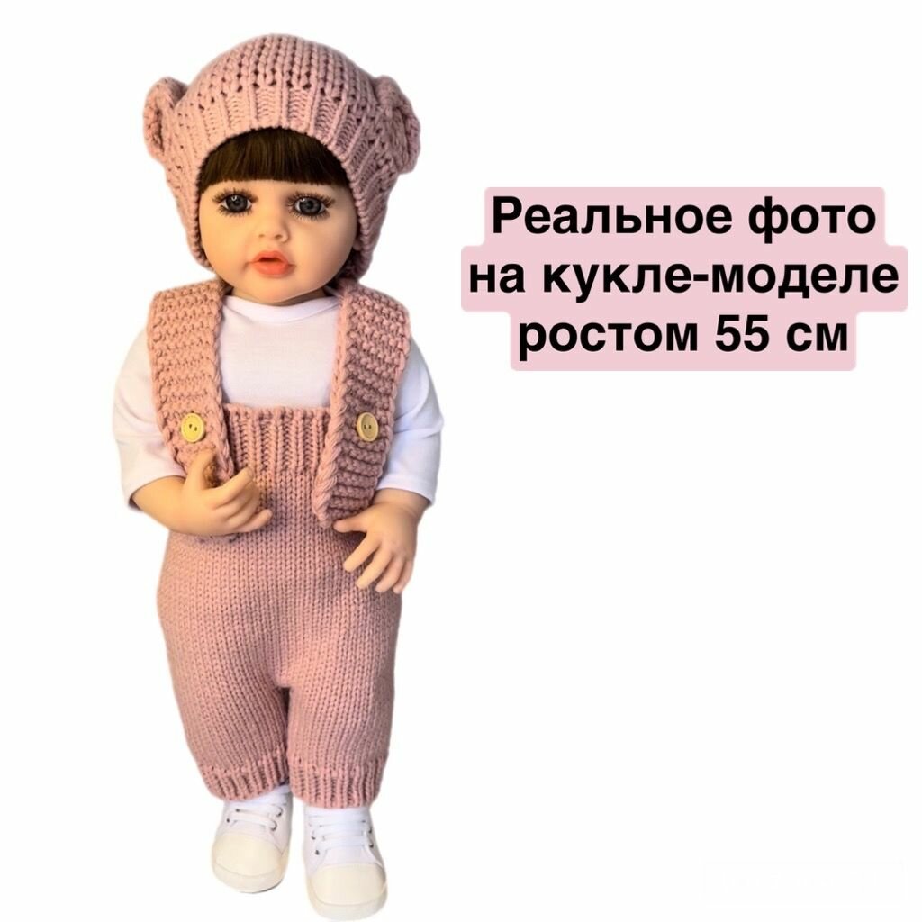 Одежда для куклы Реборн 55 60 см / Комбинезон вязаный и шапка с ушками / Комплект одежды вязаный из 3 предметов для куклы Reborn Baby информация: