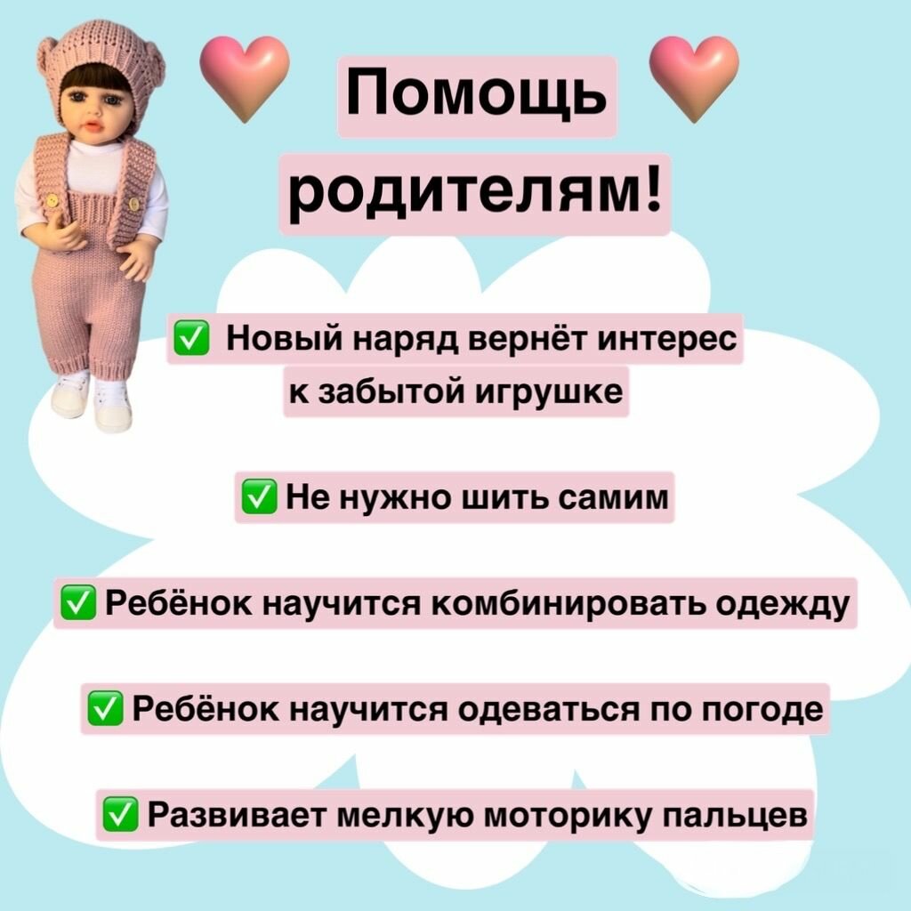 Отзывы на Одежда для куклы Реборн 55 60 см / Комбинезон вязаный и шапка с ушками / Комплект одежды вязаный из 3 предметов для куклы Reborn Baby