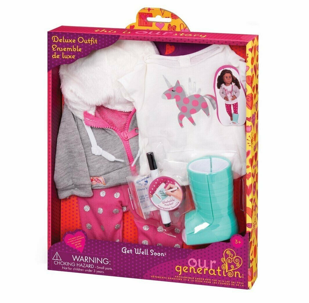 Характиристики этого товара не найдены!Отзывы на Одежда для кукол ДеЛюкс 46 см Our Generation Выздоравливай скорее с серым балахоном и бандажом для ноги