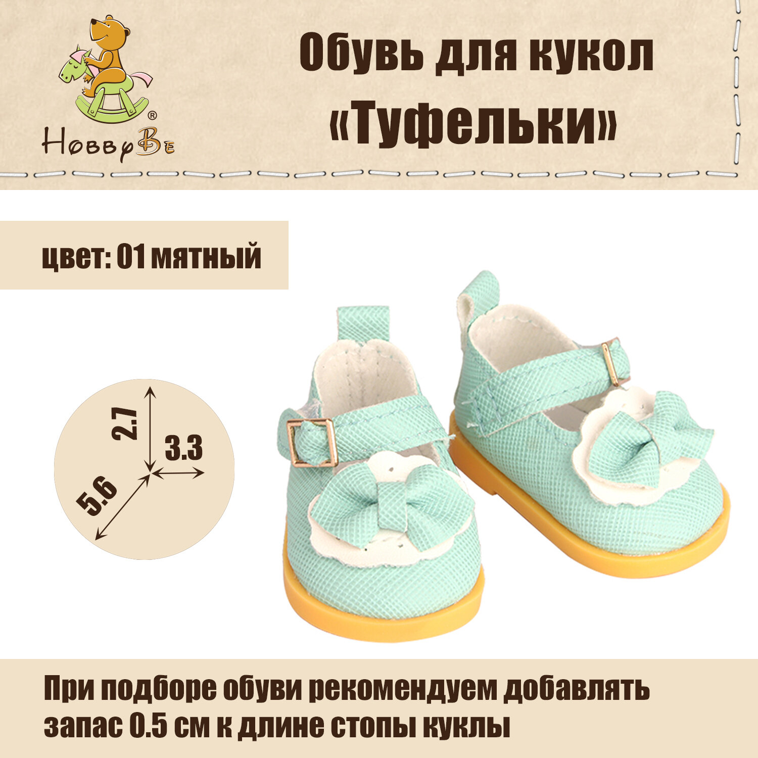 10 цен на Обувь для кукол "HobbyBe" KBG-8 аксессуары "Туфельки" 5.5 см 01 мятный