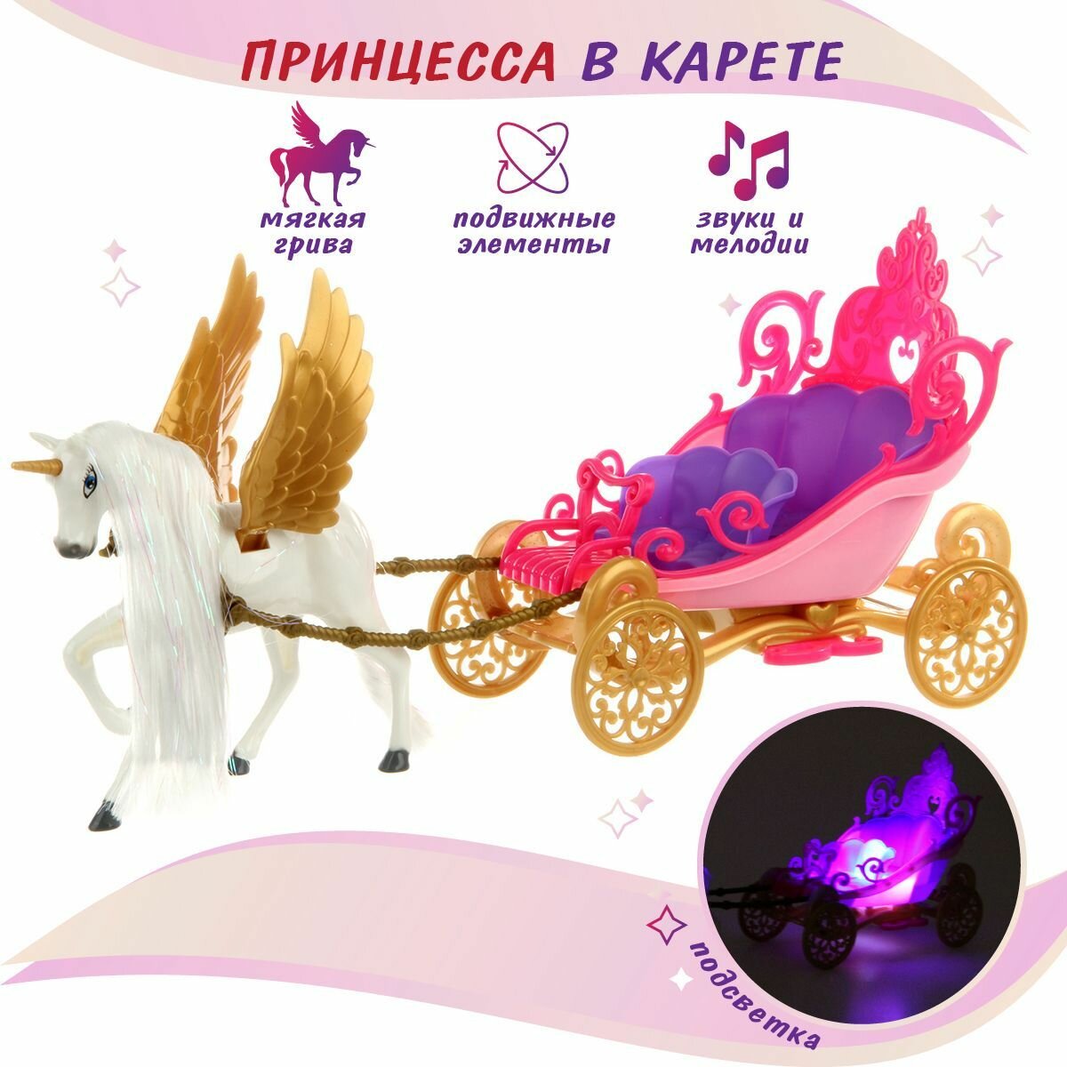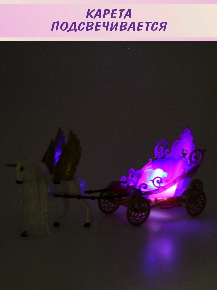 Карета с лошадью со светом и звуком, Veld Co / Фигурка лошадки с крыльями / Набор из 6 предметов информация: