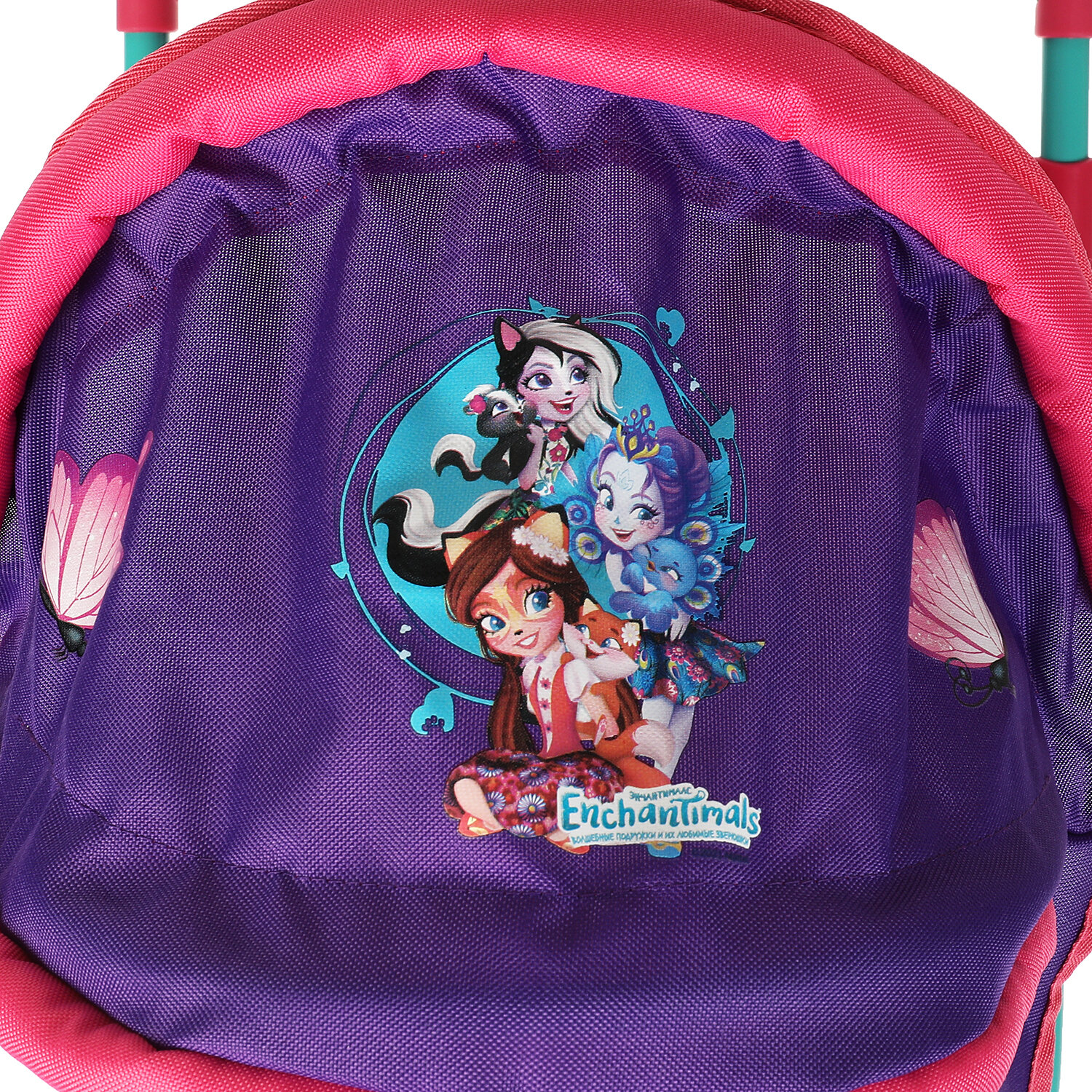 Коляска для кукол детская Карапуз Enchantimals металлическая регулируемая ручка , ремень , капюшон, корзина информация: