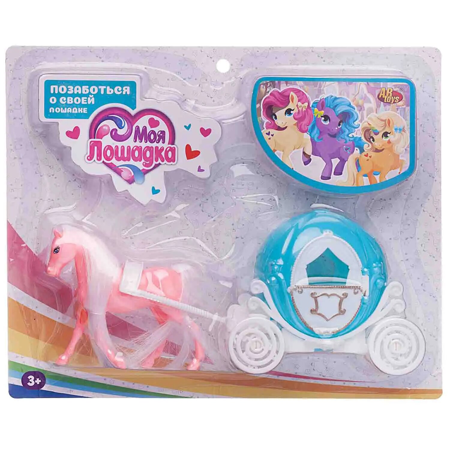 Игровой набор ABtoys Моя лошадка Карета бирюзово-белая с розовой лошадкой PT-01462/бирюзово-белая+розова информация: