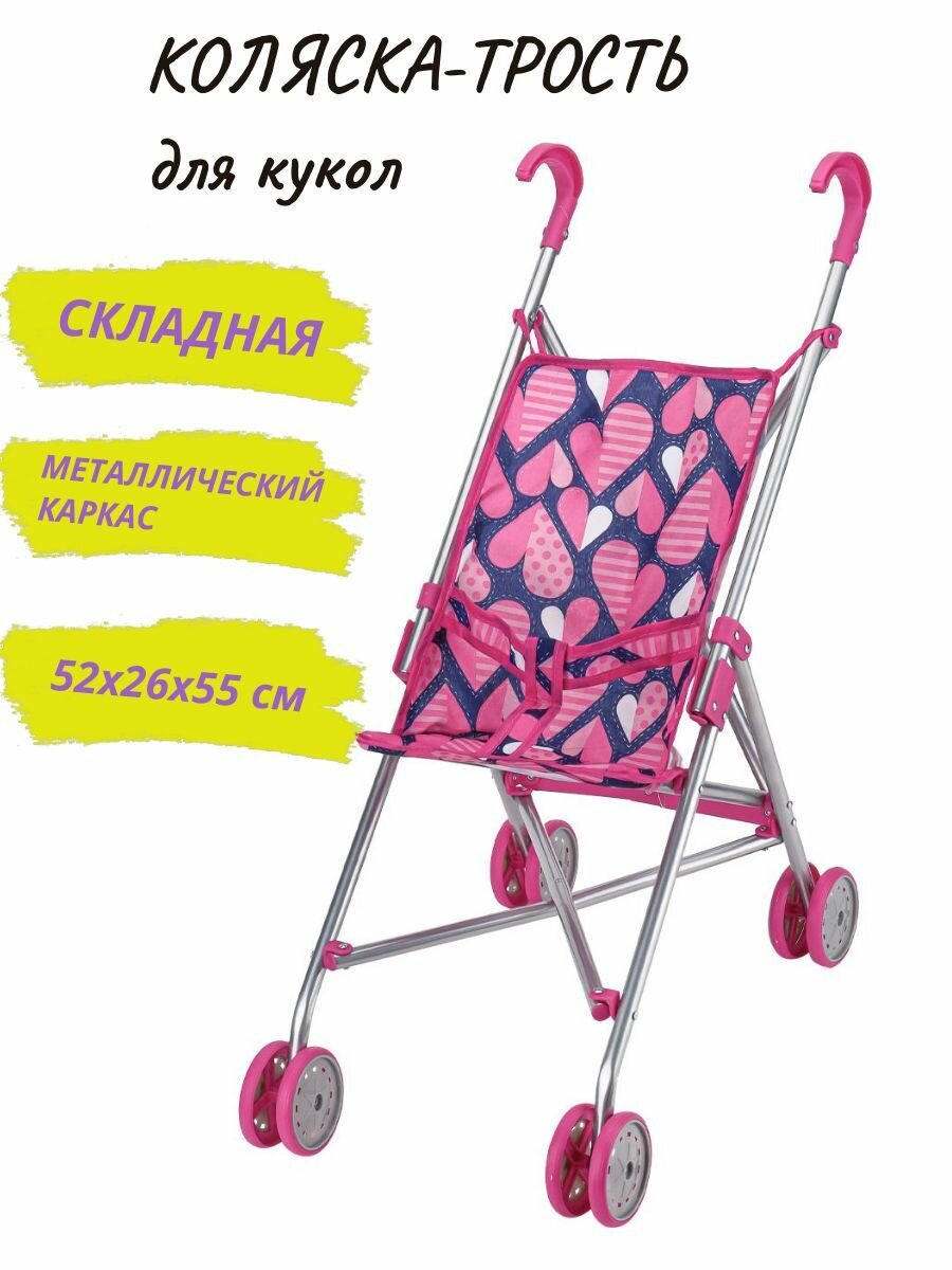 Коляска-трость металлическая для кукол складная 52х26х55 см информация:
