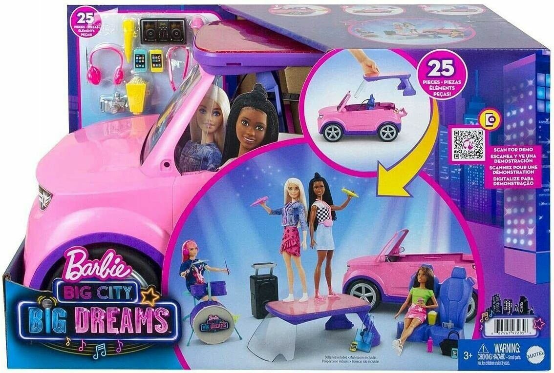 Игрушечный транспорт для куклы Barbie Big City Car - Розовый автомобиль, трансформирующийся в сцену + концертные аксессуары GYJ25 информация: