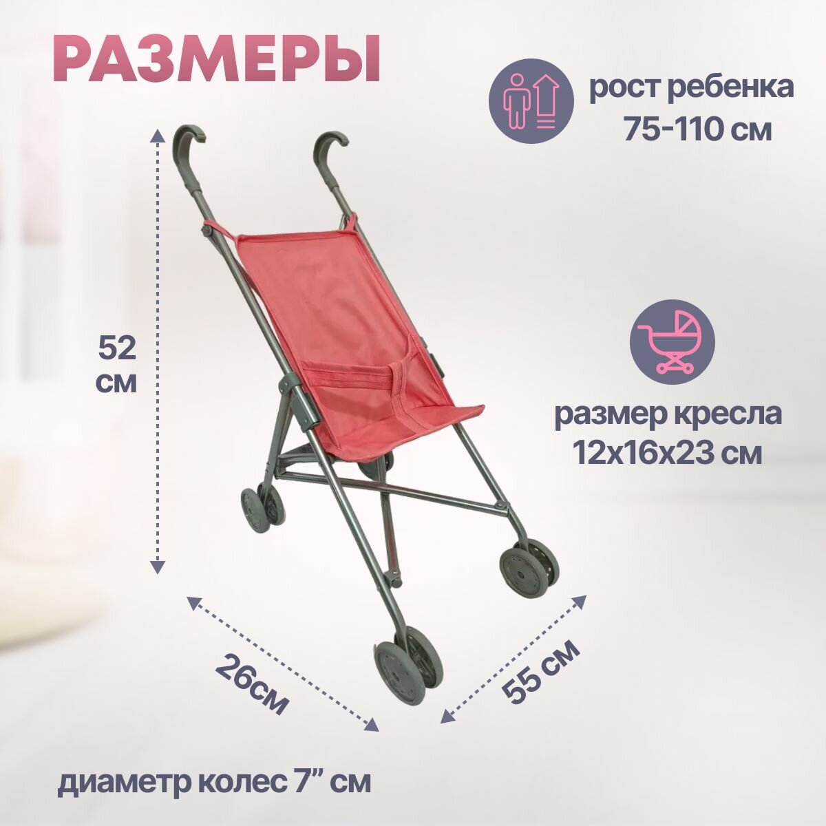 Коляска для кукол Melobo металлическая 52х26х55 см, сидячая средняя трость информация:
