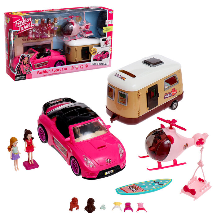 Игровой набор «Путешественницы» машина с прицепом, вертолёт, куклы, аксессуары информация: