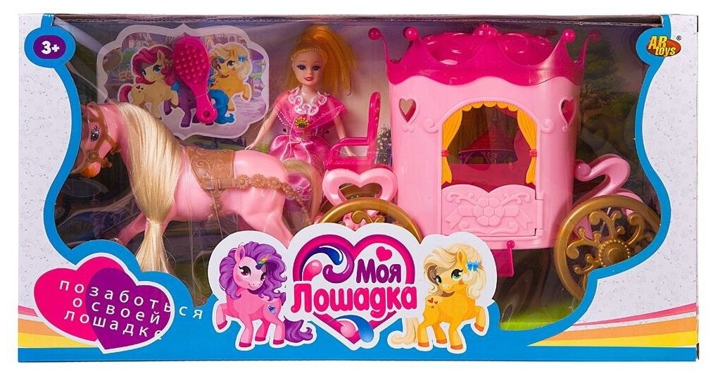 10 цен на Игровой набор Abtoys Моя лошадка. Карета с лошадкой и куколкой, розовая PT-01461P
