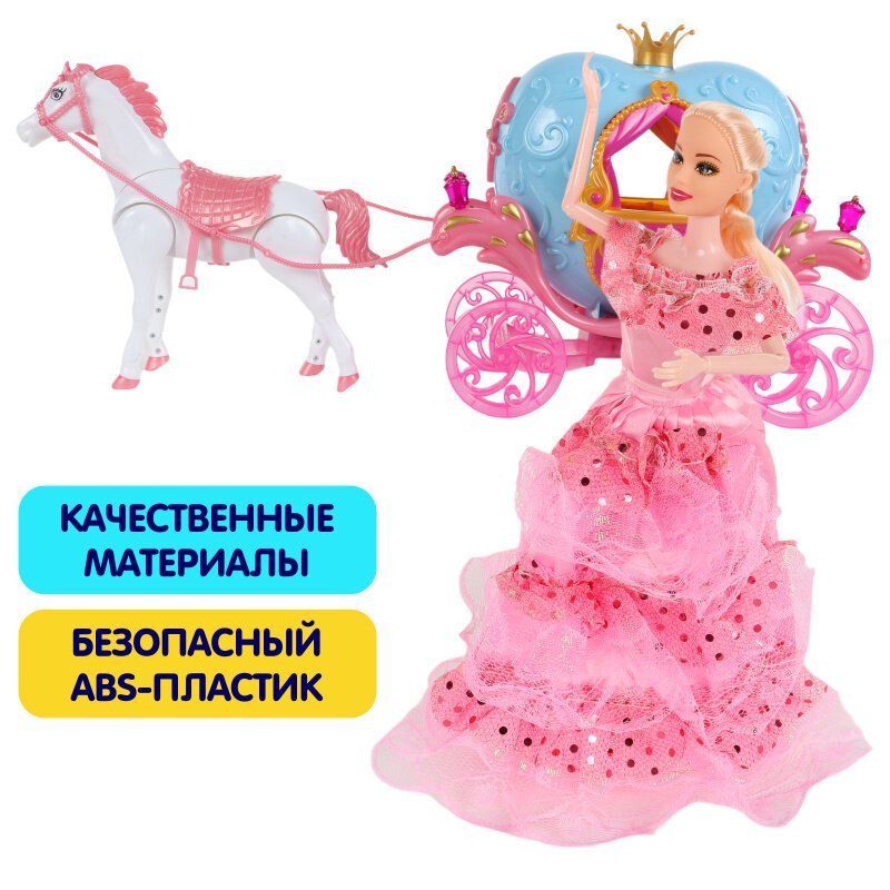 10 цен на Карета с лошадью и куклой на батарейках 811A, звуковые и световые эффекты