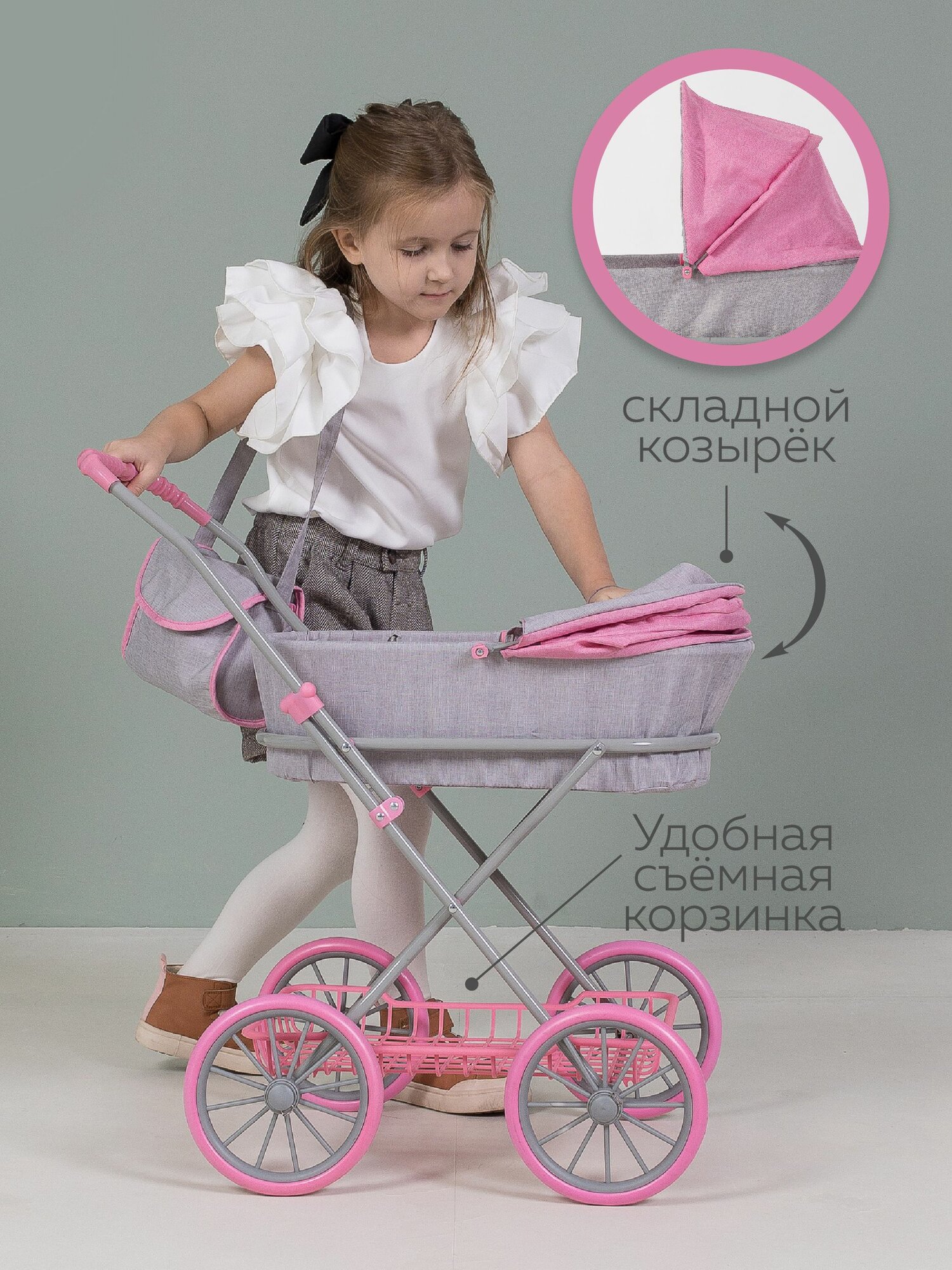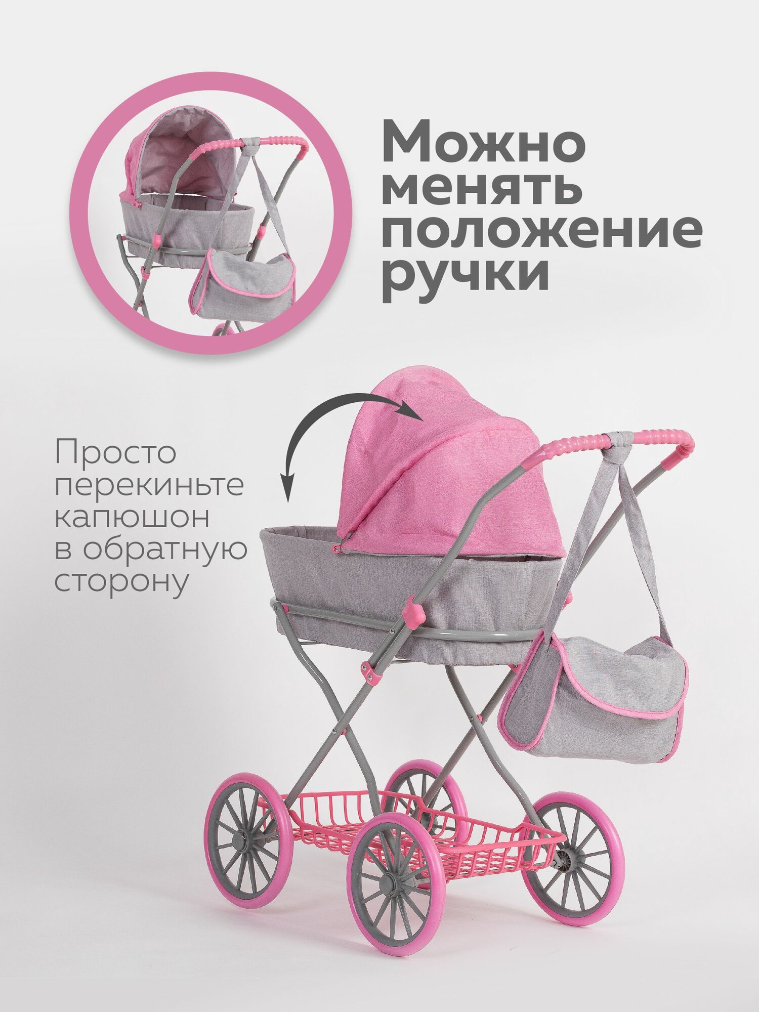 Коляска Люлька для кукол, металлическая, серо-розовая информация: