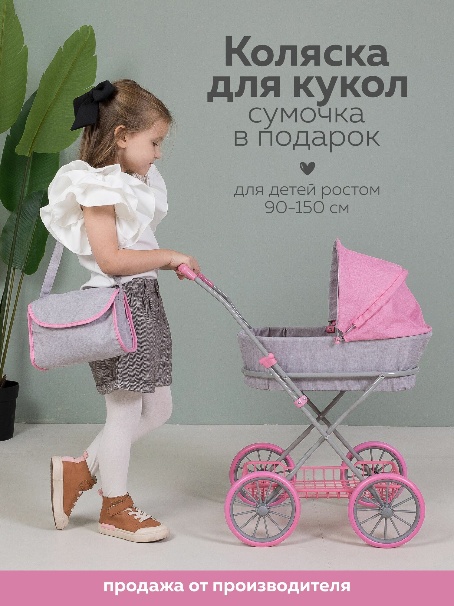 10 цен на Коляска Люлька для кукол, металлическая, серо-розовая