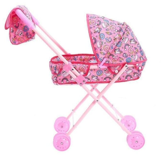 Коляска для кукол с сумкой "Сладкая поняшка", универсальная, металлический каркас информация: