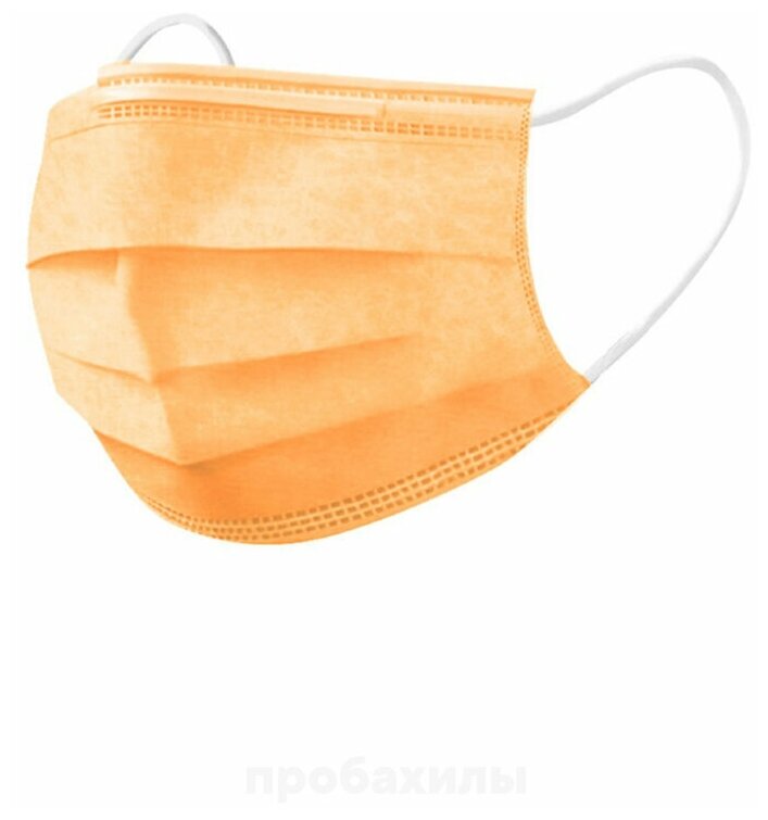 Маска медицинская Safety 3-х слойная с фильтром мелтблаун, цвет оранжевый (50 шт.)