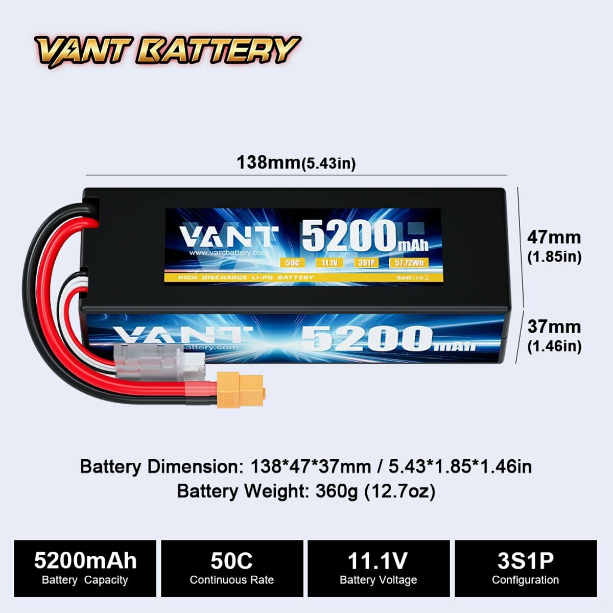 10 цен на Аккумулятор LiPo Vant - 11.1В 5200мАч 50C (3S, Hardcase, разъём XT60)