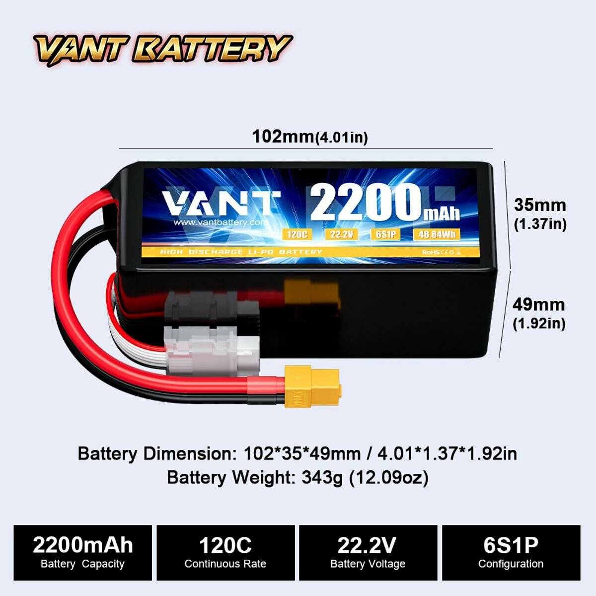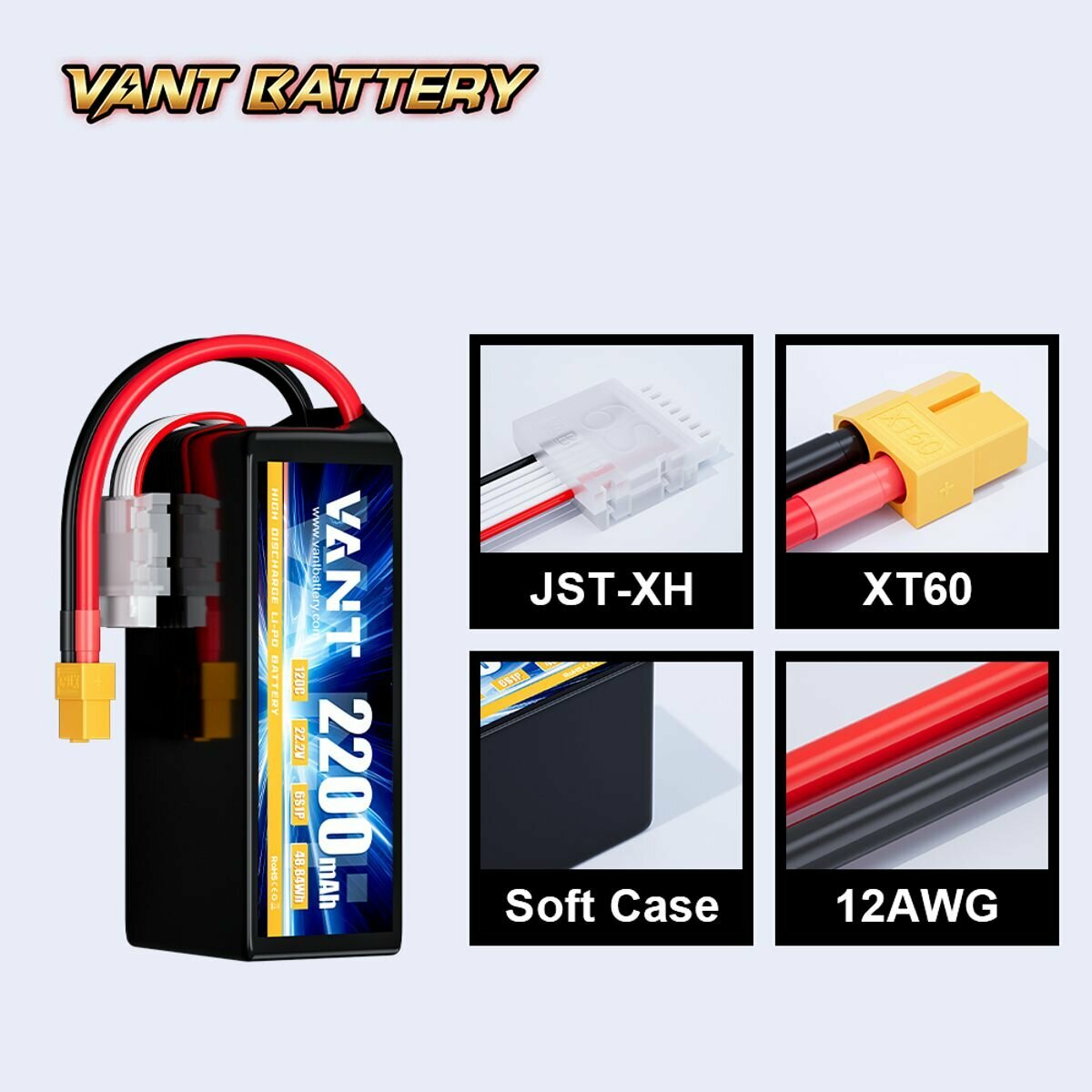 Отзывы на Аккумулятор LiPo Vant - 22.2В 2200мАч 120C (6S, разъём XT60), с графеном, 384 грамма