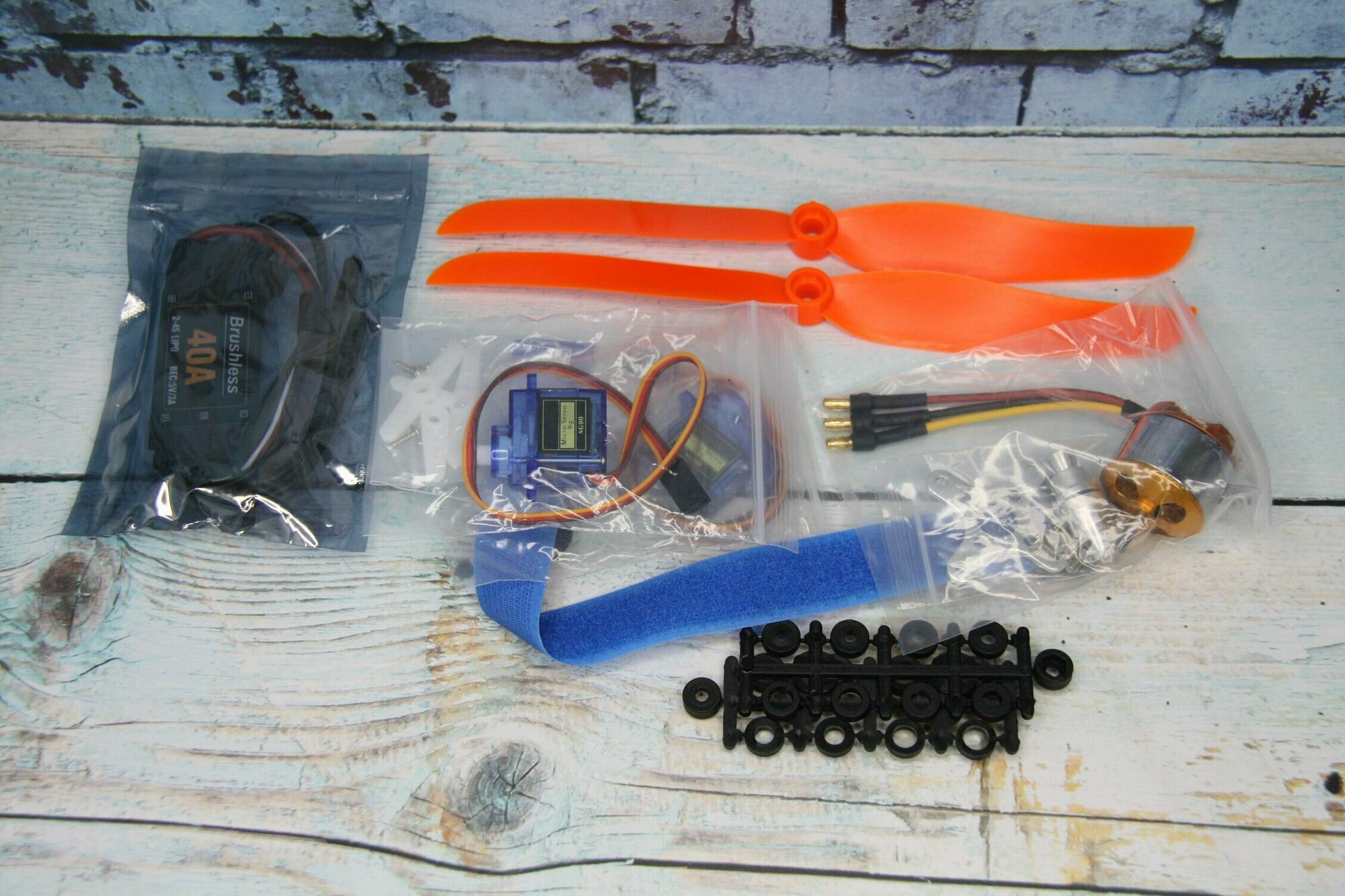 Бесколлекторный двигатель 2200KV 40A XT60, лопасти, регулятор оборотов и сервоприводы в комплекте информация: