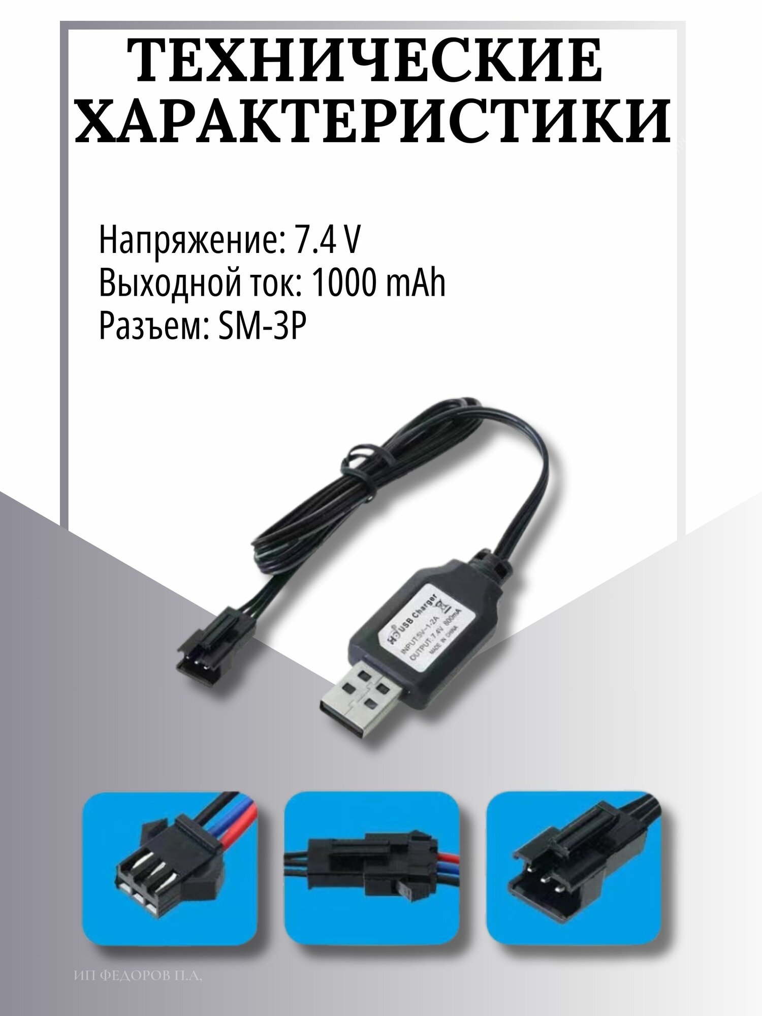 Зарядное устройство для аккумуляторов USB 7.4V, разъём SM-3P СМ-3Р YP 3 информация: