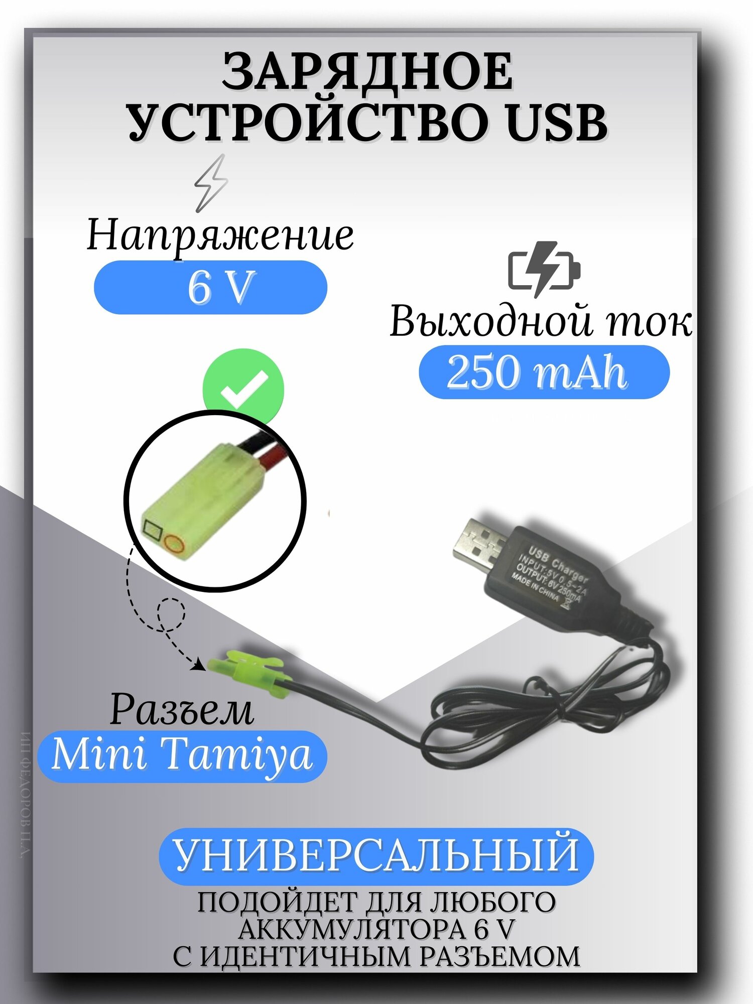 Зарядное устройство для аккумуляторов USB 6V, разъём mini tamiya информация: