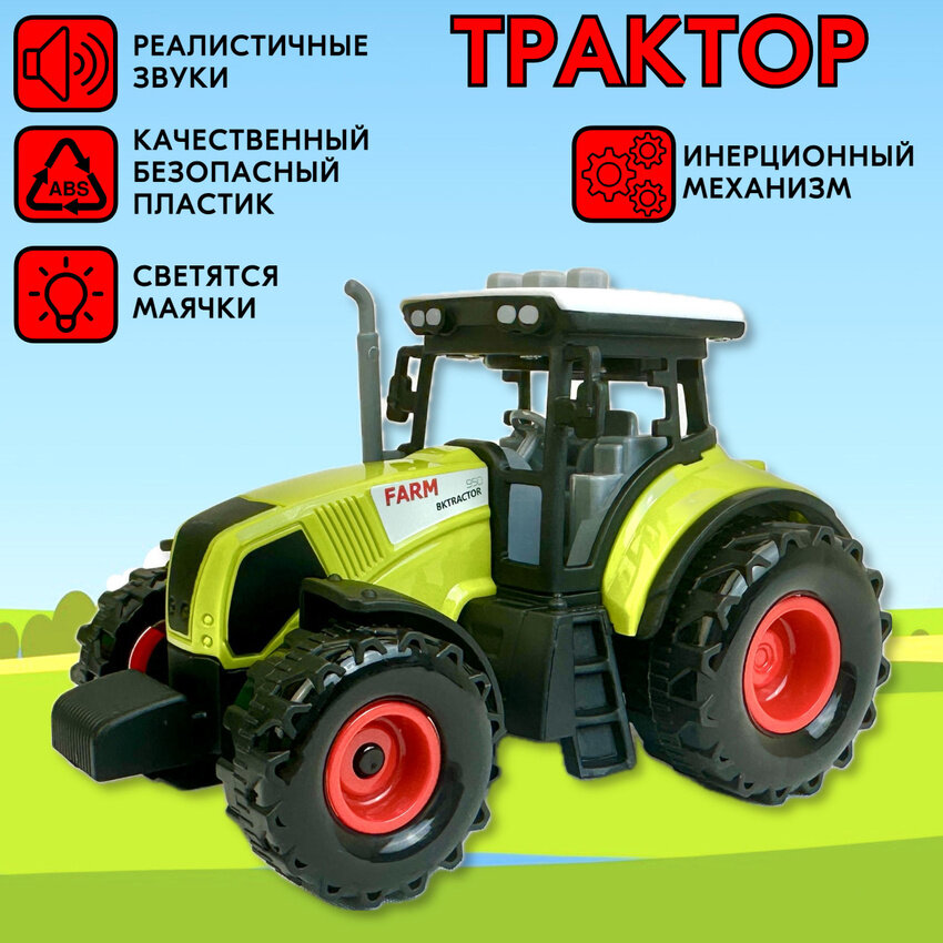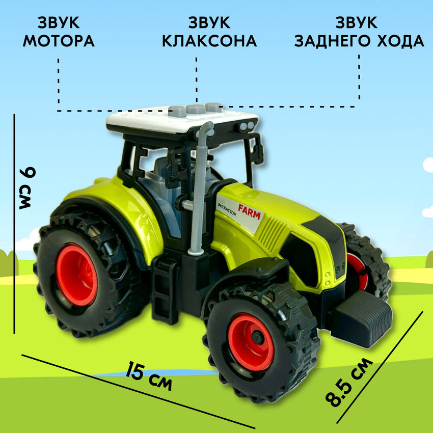 Отзывы на Трактор игрушка для мальчика, инерционный, детский, светятся фары, звук клаксона, мотора, заднего хода, 15х10х9 см