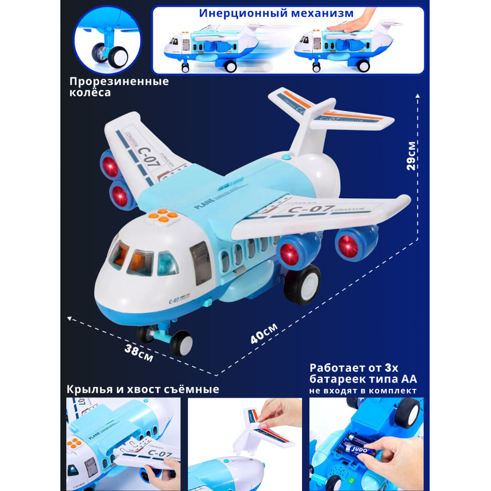 Большой инерционный самолет 39 х 38 х 19 см с паром, в комплекте 6 машин, дорожные знаки, свет, звук информация: