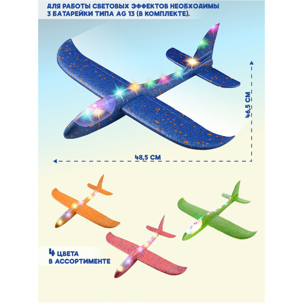 Детская игрушка пенопластовый самолет планер 46.5 см с LED подсветкой 10 ламп, 4 цвета, XYK121 информация: